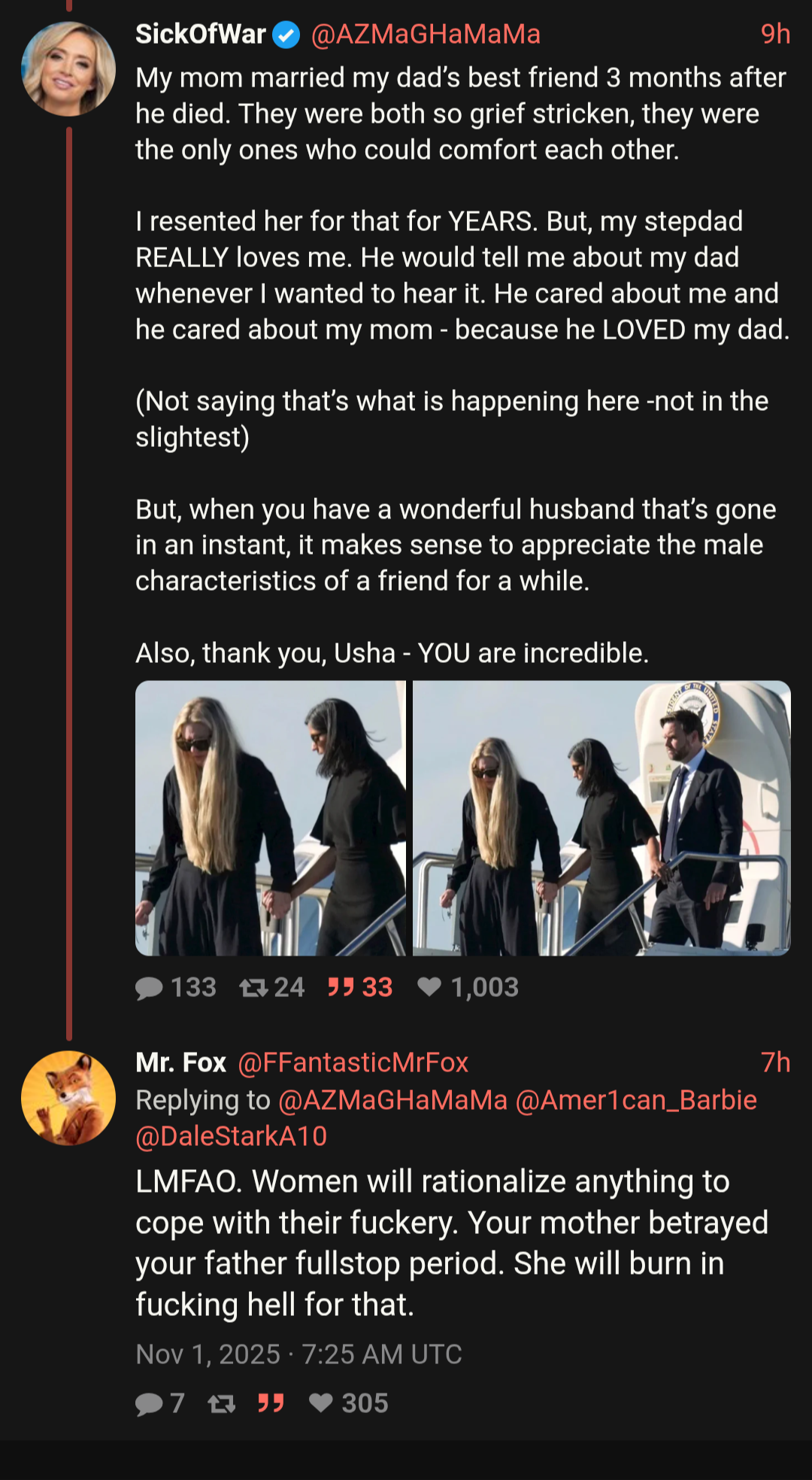 >>520340711>Liberals trying to ship Vance + KirkPeoples lives aren't your WB series or whatever trannies watch you insufferable faggots