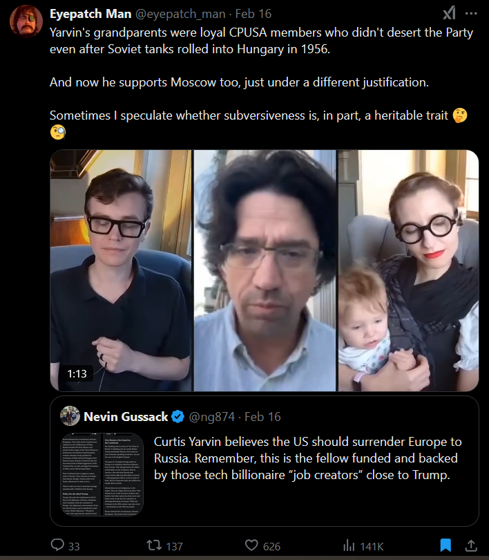 There is some minor drama over a very unfortunate oversight; Martina Markota, some burlesque dancer in NYC who got blacklisted during Trump's first term for supporting him didn't even get a callback for the recent Halloween party at Mar-a-Lago, despite that event having dancers. If I recall correctly someone even tried to have her visa revoked. She's married with a kid now.>Your sacrifice wasn’t for Trump. He owes you nothing. It was for the country and was not in vain. Go do something else. I did, I am much happier.This was actually a nice statement by Milo