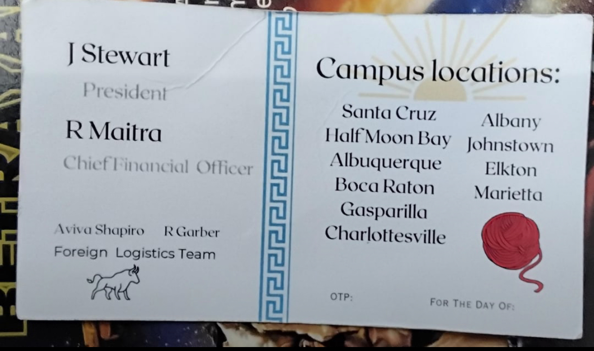 >>520398662The first version of the story didn't mention the kids at all, just a guy getting a weird business card from two men. This is a larp.IF the first version of the story is honest (that is, a guy DID get this weird business card from a couple guys in school buses), my guess from the card design is that it's part of a financial scam. Possibly a new Zonpower front.>Business card names the organization's CFOThat never happens unless it's the CFO's *personal* card. In which case Stewart wouldn't be named.>a zillion 'campus locations', a "foreign logistics team""Look how big we are!">RobertRedd.comThe logos on the card don't seem to match the site logos? However, the site is selling weird expensive memberships, which IS consistent with a Zonpower or other financial scam front.My guess is that the guy who gave the redditor the card either thought the redditor wasn't a safe sales prospect, or was too drugged-up to remember to write the upsell on it.It's also possible that this conspiracyposting is part of the marketing - Zonpower used to send spam claiming to be the Bavarian Illuminati and offering to sell "wealth secrets". (Then when they didn't work, they'd sell more wealth secret secrets)
