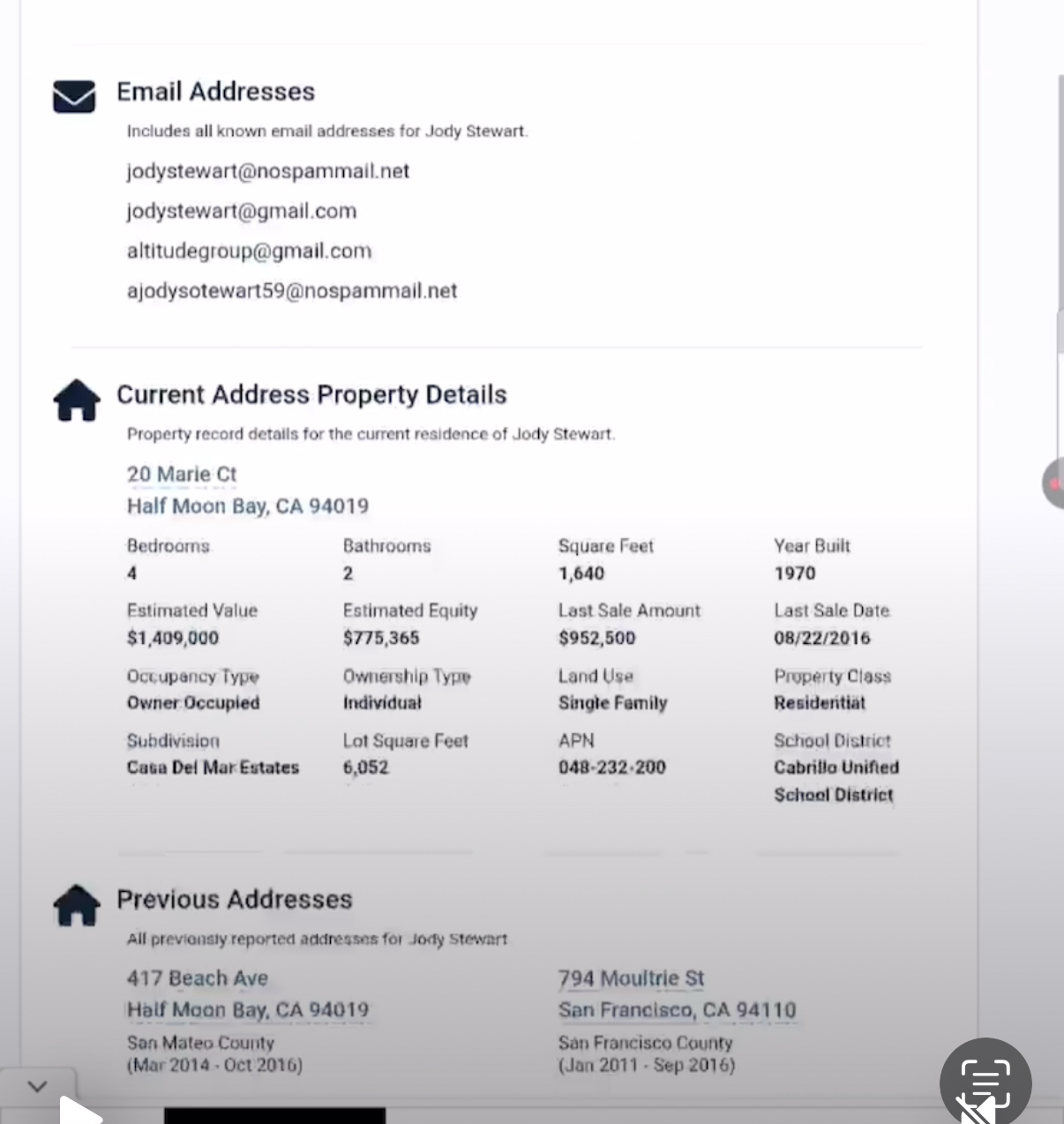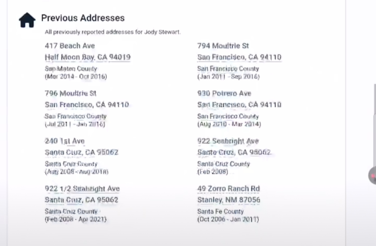 Screenshot from Jody’s True People Search. Note the address in the bottom right.