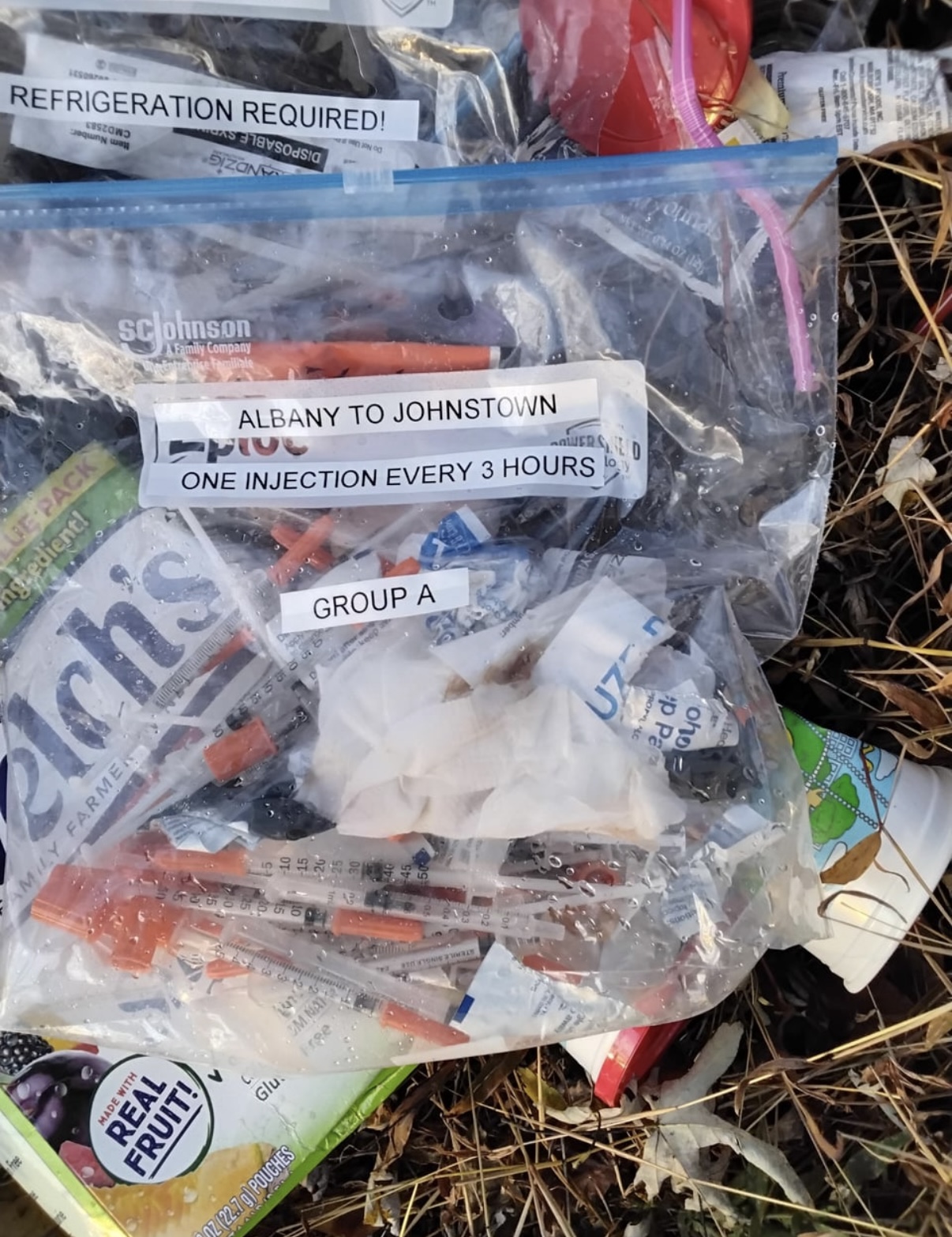 >>520399259it does seem to be a gay larp. yeah some labeled ziplock bag with syringes placed next to fruit snacks. ok.