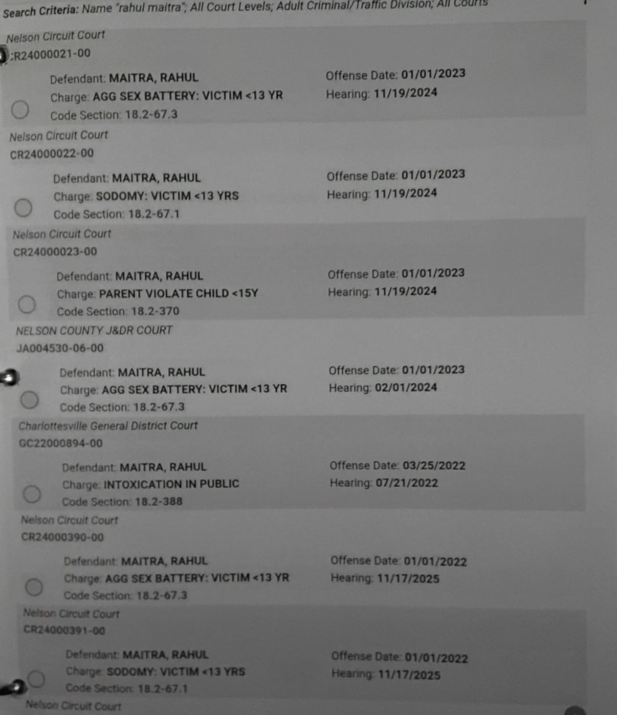 Rahul was compaigning for changes to Child Protective Services (and charged with raping his own child)
