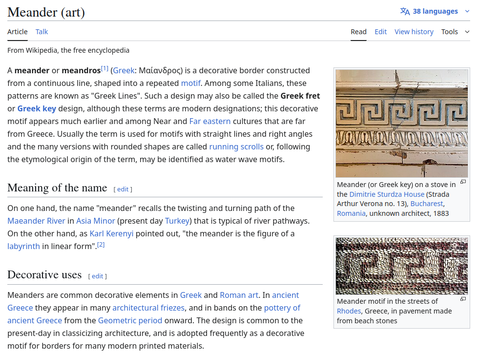 >>520400373Apparently it's called a meander or Greek key.https://en.wikipedia.org/wiki/Meander_(art)>as Karl Kerenyi pointed out, "the meander is the figure of a labyrinth in linear form".