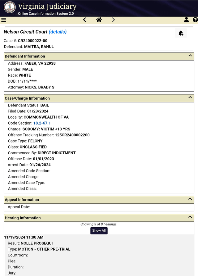 >>520405893Would it say "defendant status: bail" if the case was dismissed?