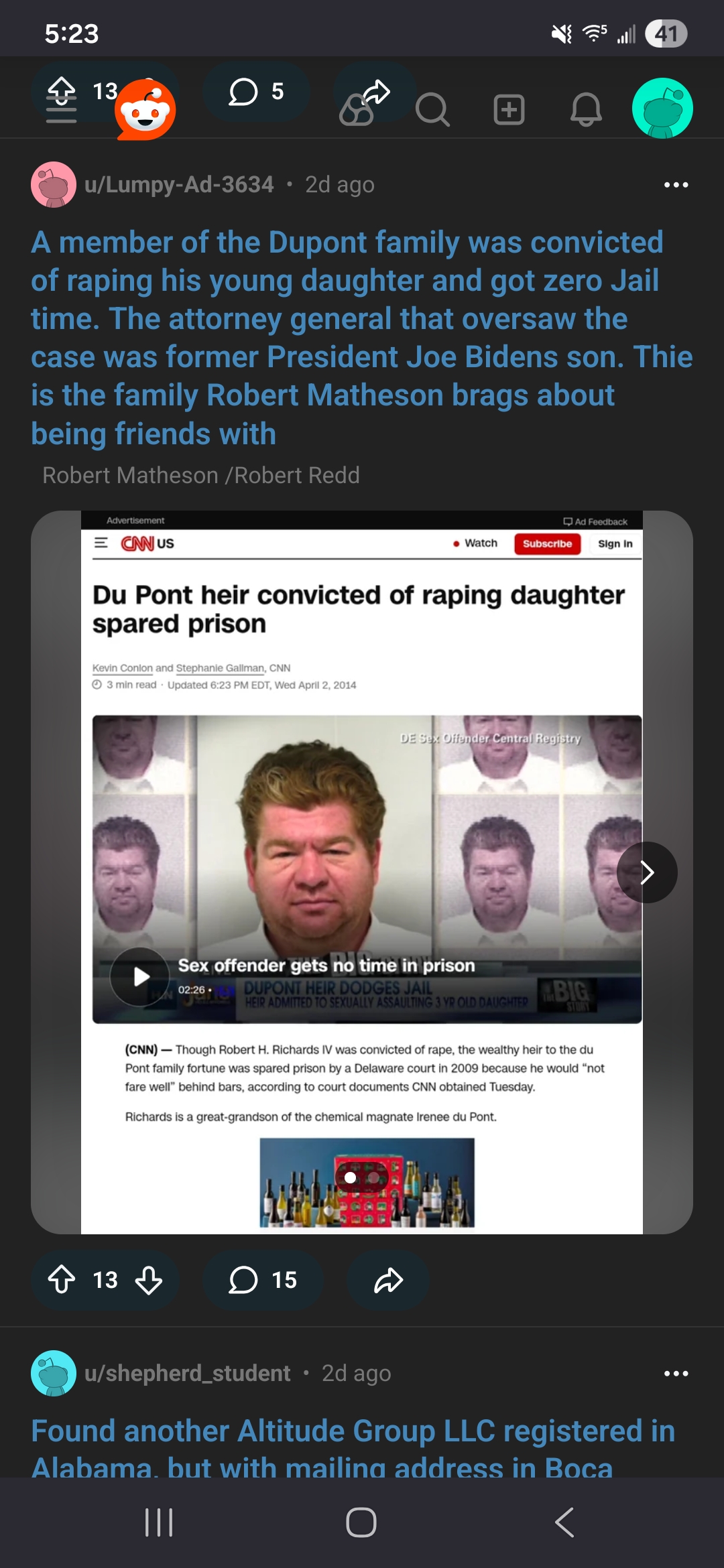 Looking up possible altitude group emails on TruePeopleSearch.com, we found a Jody Stweart who has an email altitudegroup@gmail.com, lives and has previous addresses in locations on her card, and one of her previous addresses listed is EPSTEINS ZORRO RANCH. She was able to be found on Facebook, and there are pictures of her at Epstein’s Zorro Ranch and with the ranch managers that you can easily publicly find.Also on the card is the logo for RobertRedd.com. The owner’s name is Robert Mathesons and Rahul Maitra worked as an accountant for his website.Matheson is a descendant of James Buchanan and the founder of the Dow chemical company. He wrote a few articles in Forbes magazine bragging about flying around the world with celebrities.His website is full odd and supposedly sells shirts. It offers memberships for $5000 and seems like the most obvious child trafficking website front of all time.