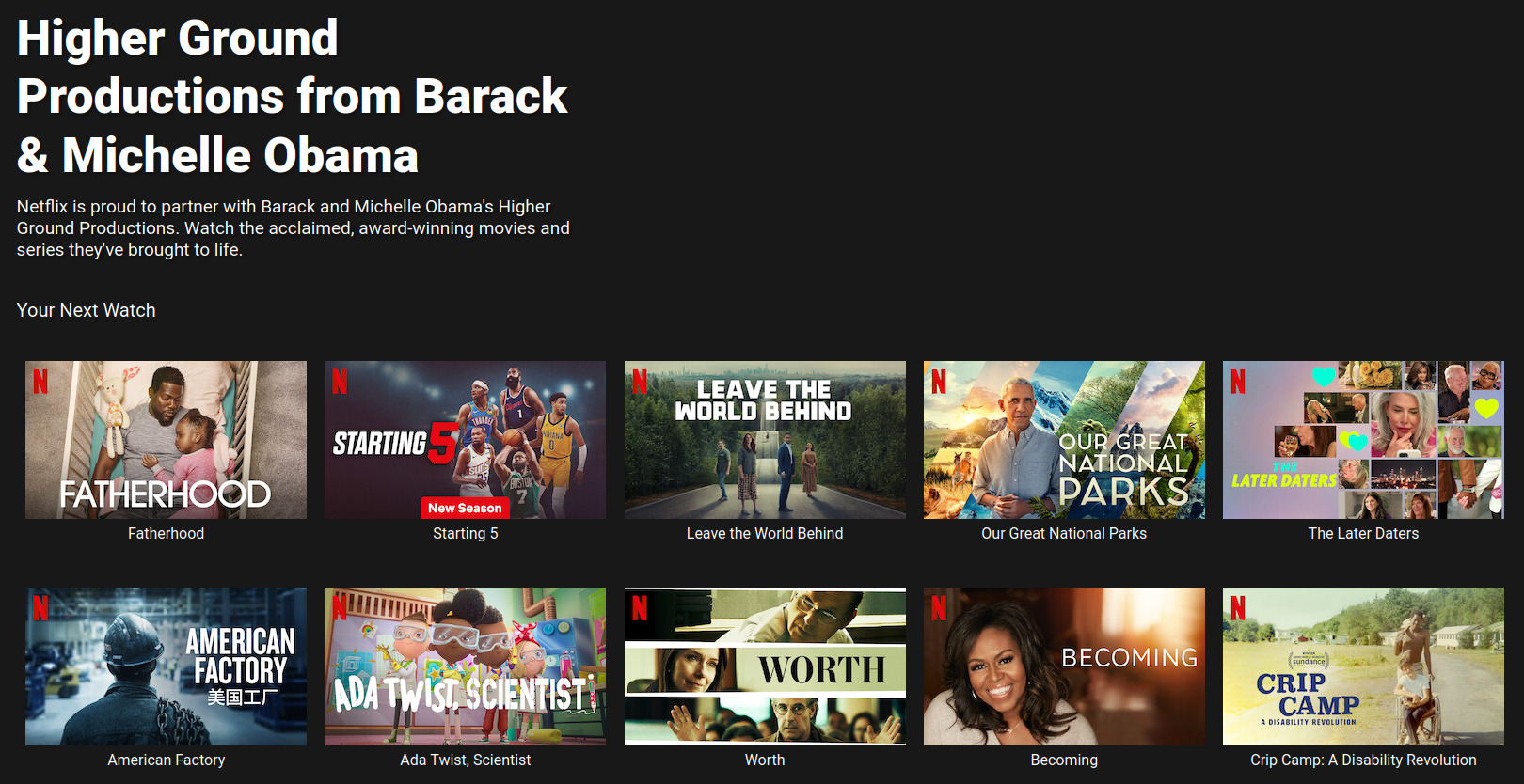 >>520411560Similarly, you have Higher Ground Productions, the Obama company behind Leave the World Behind.https://www.netflix.com/browse/genre/81486267https://highergroundmedia.com/