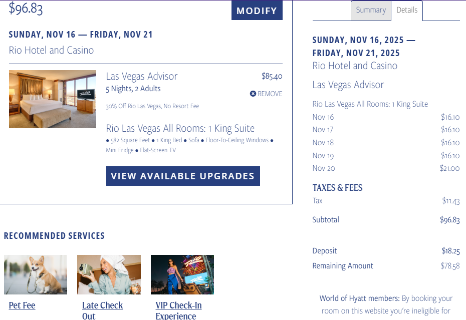 5 nights in a King Suite during F1 for $97. There is a Chik-fil-A and a Del Taco across the street. Use promo code LVA25.