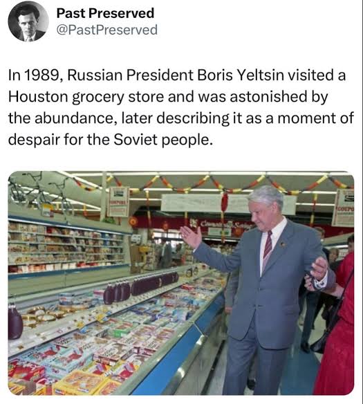 Like when Gorbachev visited the American supermarket, perhaps now it's the other way around, Russia is a superpower and America a minor, unrecognized decentralized power, national schizophrenia