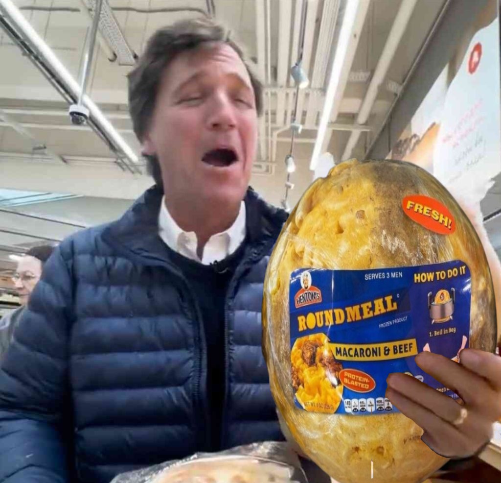 Tucker emerging just in time thinking about just going back to that german Lidl store with a different name to bypass the sanctions in Moscow and grab a loaf of cheap bread to save before he heads back home to the US! Saving the whole fucking world by showing up, ironically, with a loaf of bread in hand that almost caused a nuclear toral civilizational destruction.