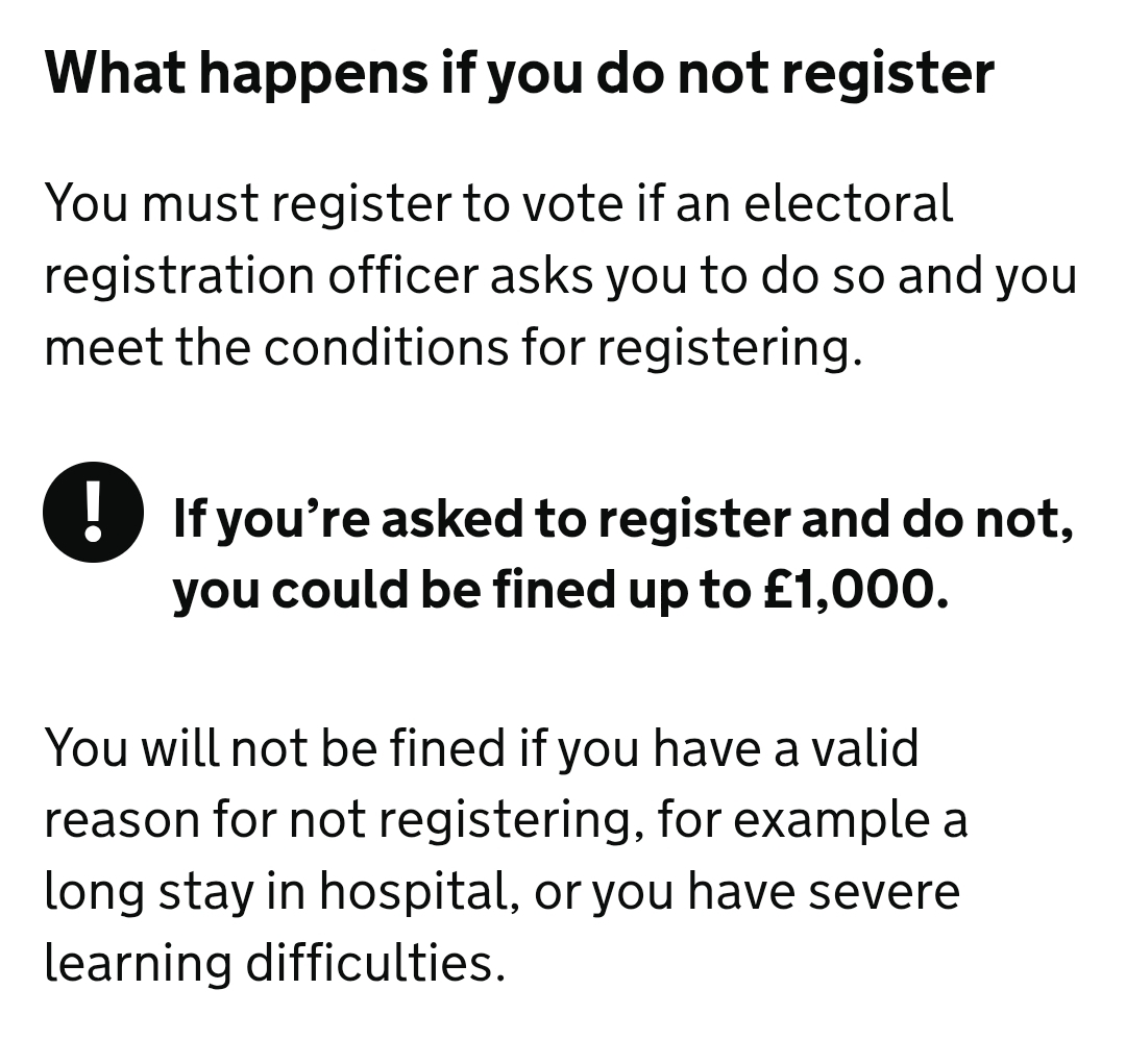 The council sent me a letter telling me if I don't register to vote they could fine me £80.Is this true?