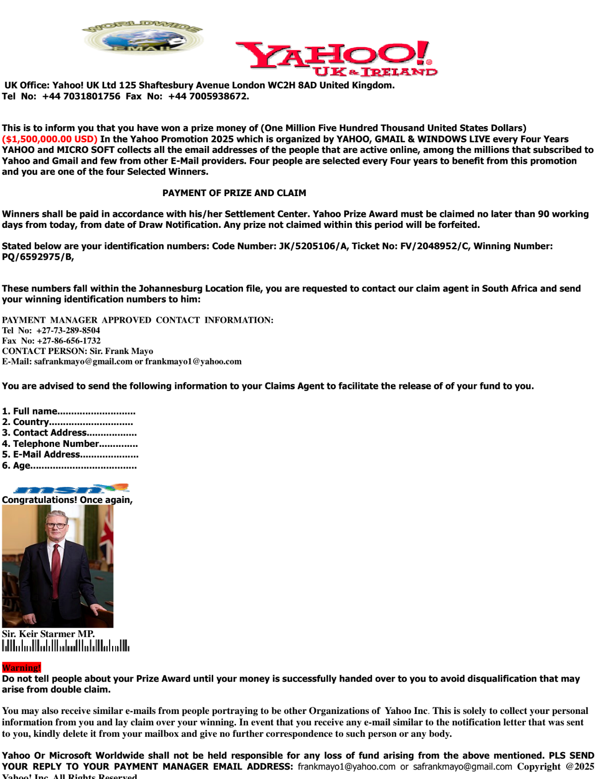 i just received news from starmer
