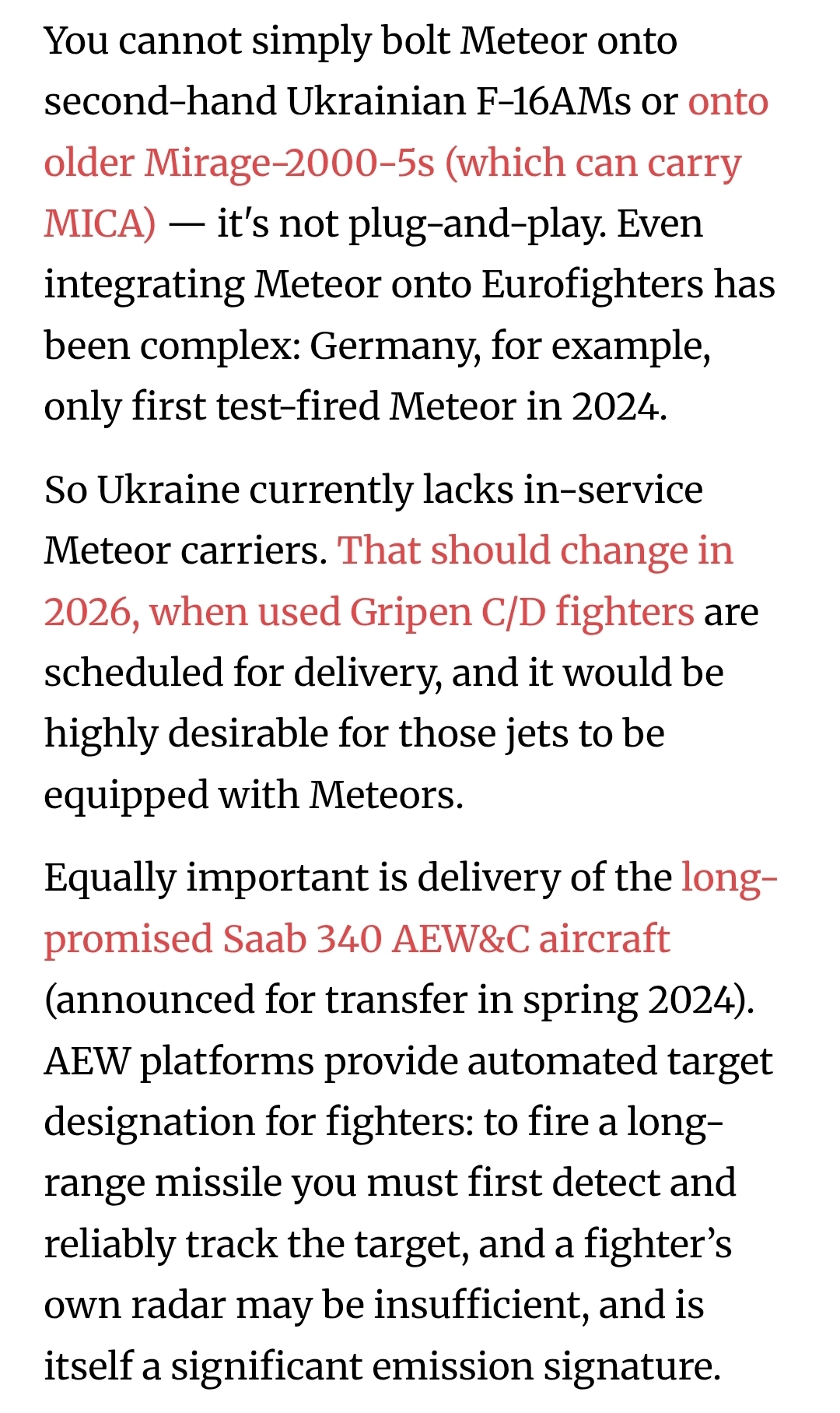 >>520553620Well maybe the Russians was drinking too much vodka and strike randomly, for no reason at all. Or maybe because the whole hruk and western media went radio silence on every "bad news" and ridiculed Russia for propaganda. The fact: only one Saab 340 was handed over few months ago (I dunno if the second will arrive soon). This means somehow the whole pet project suffered a year delay.