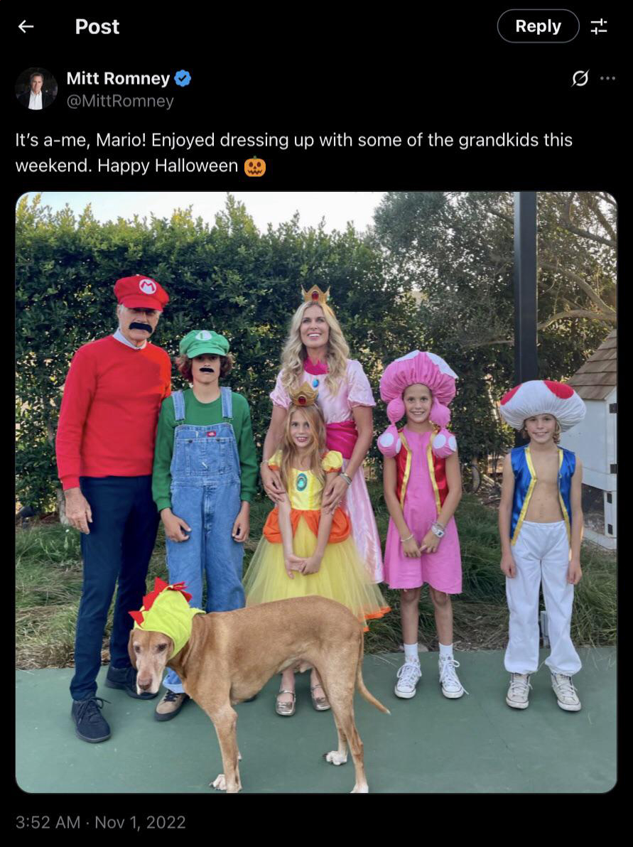 The whole point of leading a family is so you can be Mario on Halloween
