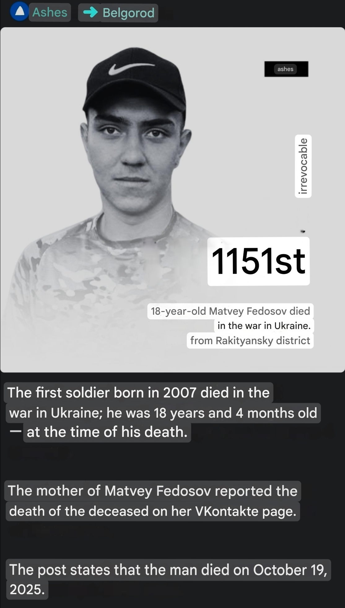 >>520583816Well maybe to avenge the 200 dead Ukrainians who died there, they barely made it to the outskirts of the village, but never made it home :^(