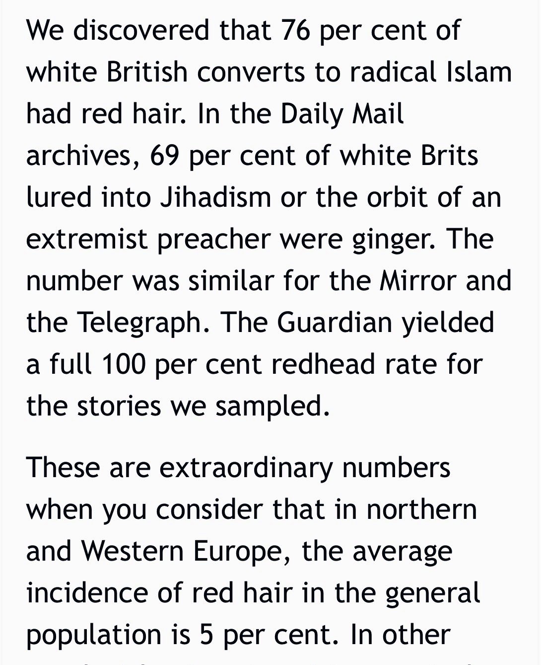 >>520590394I saw some knobhead on the telly saying that there are loads of ginger people in the middle-east.He didn't make any particular point, just pointed it out.
