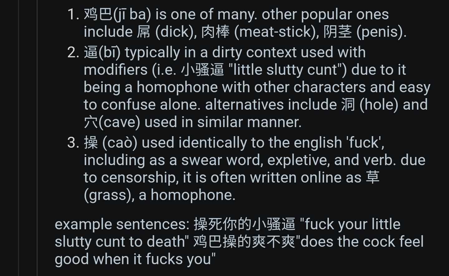 >>520610591I was wondering if the Chinese have analogies of English slang like fanny, or "little breeze".