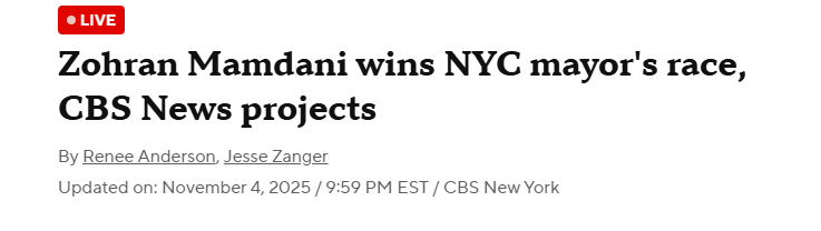 That said, he basically promised NYC free ponies. The mayor can't make public transit free, because the MTA is state controlled. He can't freeze rents either, he can only appoint the board that will vote on whether to stabilize them each year. And he can't "create" government grocery stores, he has to work with a ton of other agencies/entities. This is how socialists work though, they promise the world and then when they can't deliver, demand more power so they can do what they promised. It's a closed if familiar loop. His primary goal will be filling the NYC bureaucracy with socialists. That will have serious repercussions for NYC going forward.