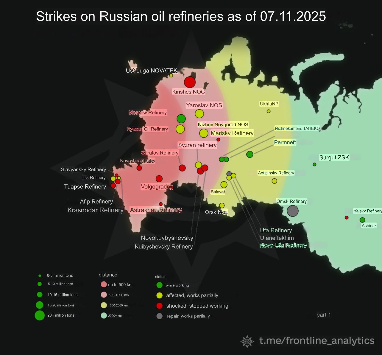 Previous: >>520817479Day 1,353 – Daily assessment: https://understandingwar.org/analysis/russia-ukraine/#research▶Latest>'A powerful secondary detonation' — Ukraine confirms drone, missile strike on Russian Shahed base at Donetsk airport>Kostroma Power Station droned. Third biggest in Russia + Volgograd reFINEry also droned. >HUR + Ru rebels Chernaya Iskra destroy Russian missile equipment and radar in Kursk region>Russian IL-76 transport aircraft downed by Chinese AA system used by rebels in Sudan>Tuapse refinery offline due to Tuapse port infrastructure damage from drone strikes>Ru Rubikon drone unit's HQ droned by Ukrainian FP-2>Ukrainian naval drones strike Syvash drill rig in the Black Sea where Russian special forces were stationed>Sterlitamak petrochemical plant 1,400km away droned>Kstovo refinery (Lukoil) struck>Ammo depot in Luhansk struck>Saratov refinery droned>Tuapse oil terminal struck with drones>HUR destroyed all three lines of Russia's Koltsevoy fuel pipeline near Moscow>The Russian government will borrow Chinese yuan to plug a hole in the budget>HUR destroyed an Oreshnik in the summer of 2024, Zelensky revealed in press briefing on 31st Oct>Oryol thermal power plant hit with Neptune missile>Yaroslavl refinery droned>150k+ named dead ziggers t. Gorushko OSINT>HOMO Lt Col war criminal carbombed in Kemerovo region>Thermal power plants and oil depots in Simferopol in occupied Crimea raided>Stavrolen chemical plant in Stavropol region raided>Mari El refinery raided▶Telegramhttps://rentry.org/telosint2023https://t.me/ukr_pics▶Intelhttps://t.me/DeepStateENhttps://odin.tradoc.army.mil/WEG (equipment explorer)https://ukr.warspotting.net (visually confirmed losses)▶Mapshttps://deepstatemap.live/enhttps://liveuamap.com/en▶DISPOSABLE SOLDIER (diary of a RU mobik)TOUR 1: files.catbox.moe/34fuhc.txtTOUR 2: files.catbox.moe/uj2wut.txtTOUR 3: files.catbox.moe/hmyd98.txtTOUR 4: files.catbox.moe/cdenxe.txt