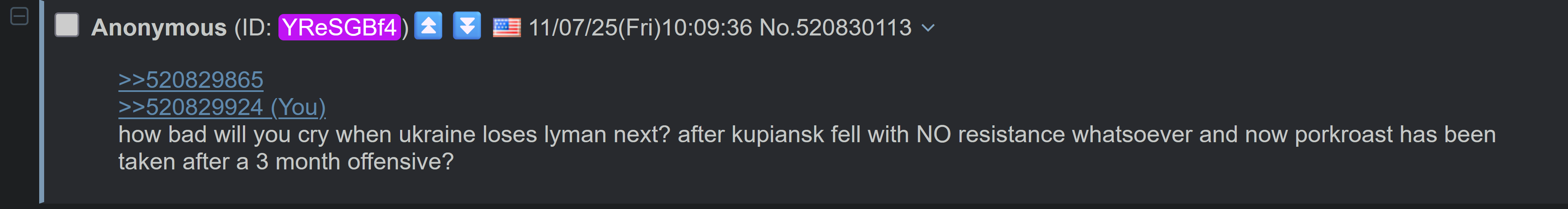 >>520828917I don’t even know who the other guy is You just amuse me by throwing a tantrum as your “precious” soldiers are slaughtered