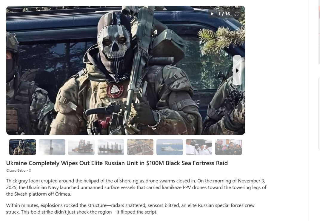 https://www.msn.com/en-us/news/world/ukraine-completely-wipes-out-elite-russian-unit-in-100m-black-sea-fortress-raid/ss-AA1PZgwhAn elute Ukrainian unit wiped out and destroyed a Russian fortress! The Russians have not fought elite soldiers like this before.