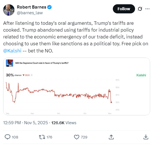 Trump's tariffs getting fucked by SCOTUS would actually be a blessing in disguise for MAGA, since Tariffs have clearly harmed the economy and it'd be a good way for Trump to distance himself from the policy without going full cuck.