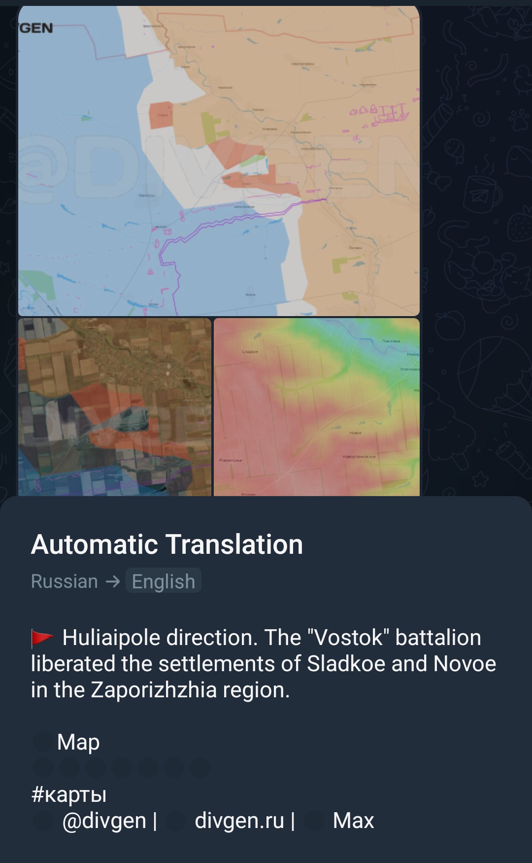 ▶MAPSRybarhttps://t.me/rybarSuriyakhttps://t.me/s/suriyak_mapshttps://www.google.com/maps/d/u/0/viewer?mid=1V8NzjQkzMOhpuLhkktbiKgodOQ27X6IVKalibrated maphttps://www.google.com/maps/d/edit?mid=1VcGZiwrEi8t9kXvVnWNEmO5ScvBWK6AWeeb Unionhttps://www.google.com/maps/d/u/0/viewer?mid=1sFRJhfNV-R1kSTXcej2MeHBzcCL8X0oDivgenhttps://divgen.ru/Air Raid Alarmshttps://alertmap.ruhttps://alerts.in.ua/enLive - Black Sea - Marine Traffichttps://www.marinetraffic.com/en/ais/home/centerx:35.9/centery:45.3/zoom:7Black Bird Group (Finnish)https://scribblemaps.com/maps/view/id/091194Livemap (Hohol)https://liveuamap.com/Copestatehttps://deepstatemap.live/ISW (neocons)https://arcg.is/09O0OSTopographical map of the Ukrainehttps://en-gb.topographic-map.com/map-wmv51/Ukraine/Copernicus satellite imageryhttps://browser.dataspace.copernicus.eu/NASA FIRMS "Firemap"https://firms.modaps.eosdis.nasa.gov/map/#d:24hrs;@36.6,47.3,6.4zMore maps:https://opermap.mash.ru/https://lostarmour.info/maphttps://t.me/s/NabrezhnyeIntel