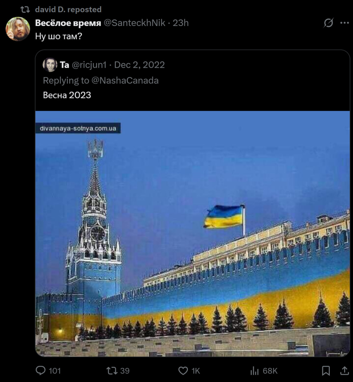 >>521053249I checked David's feed just now.He reposted a hohol mocking the "spring 2023" counteroffensive, and seems to be oblivious to it