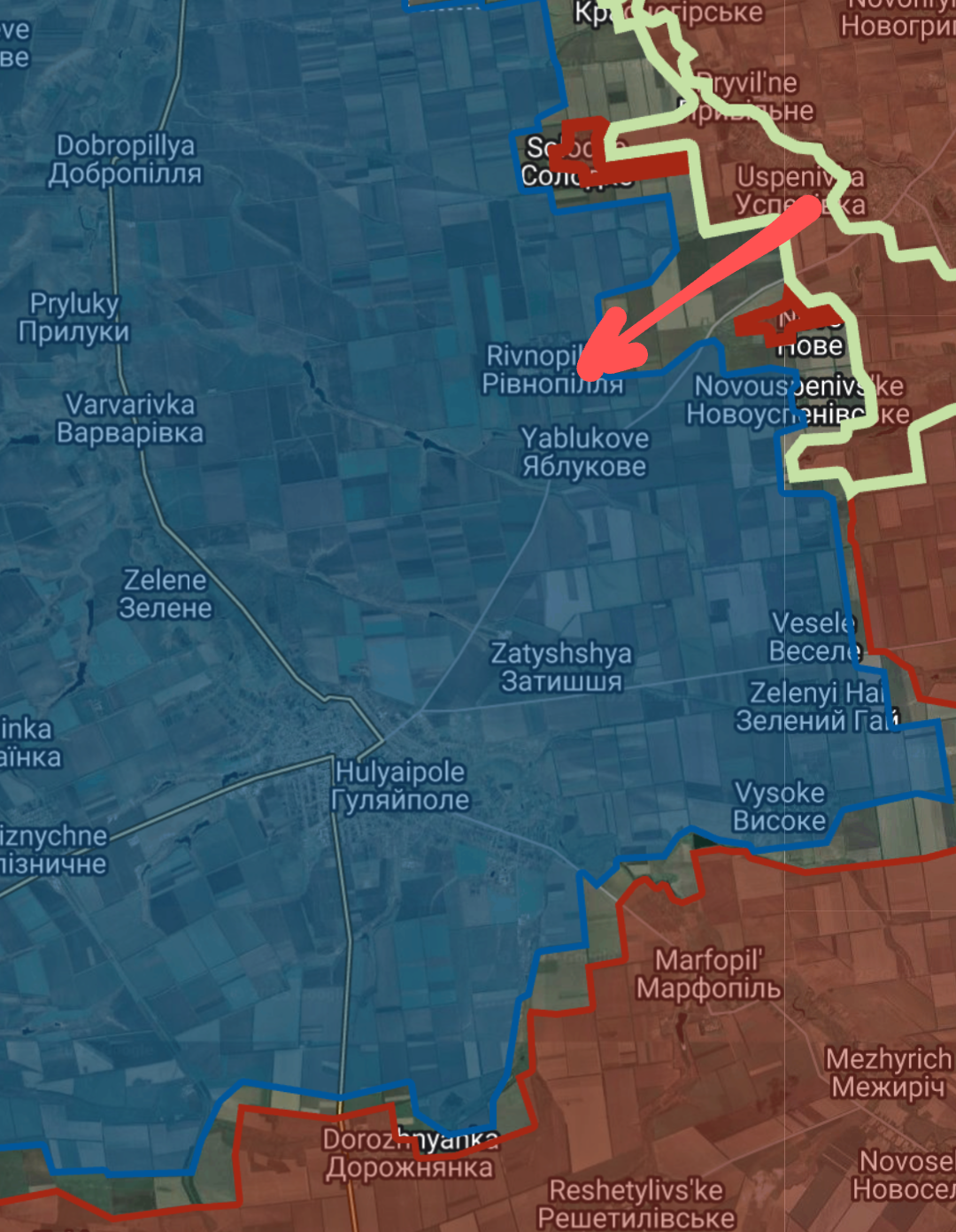 Reports of the Russians having reached Rivnopillya west of the Yanchur river.They're eating up the ground north of Hulyaipole.Snail Bros... We lost