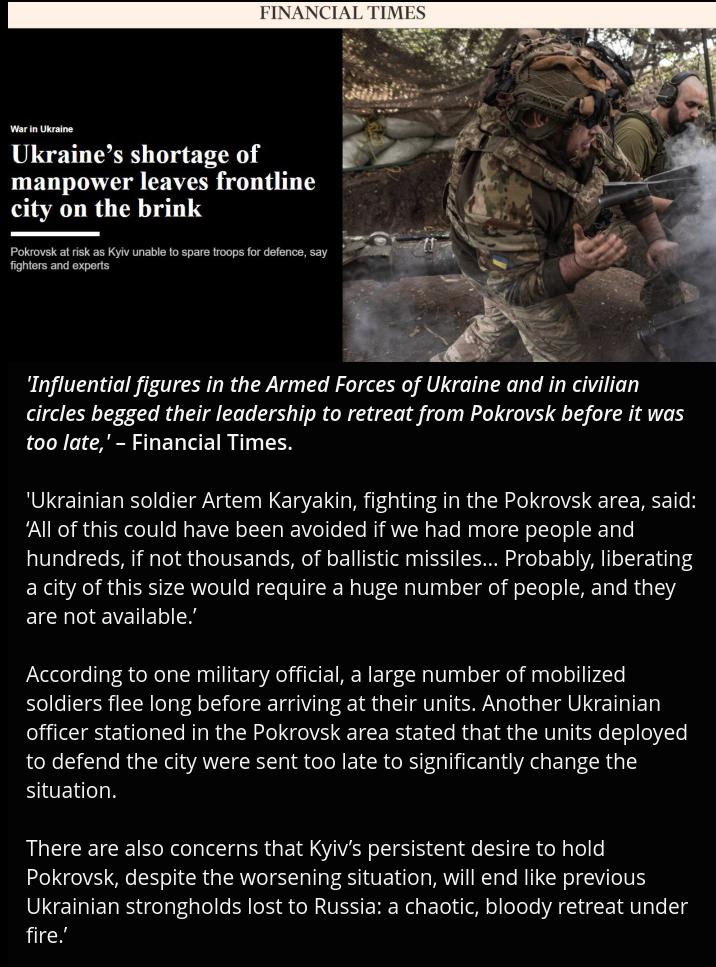 >UKRAINE'S SHORTAGE OF MANPOWER LEAVES POKROVSK ON THE BRINK (The FT) Oy vey. What shortage? I thought it was Russia that runs out of everything