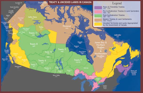 Basically 90% of the land in British Columbia (western sea border), North Canada and much of Queerbec/Newfound Land is marked as unceded land in Canada.
