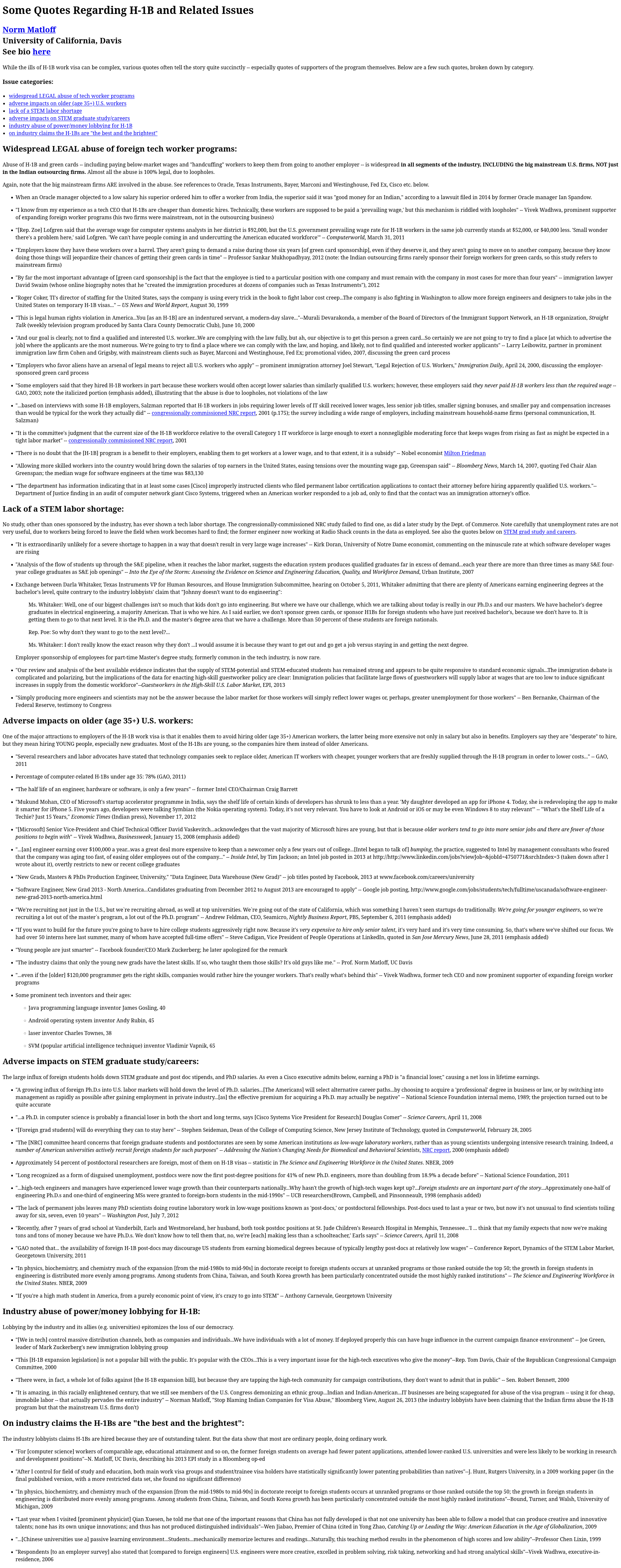 >>521192511He's not correct. Companies wouldn't be laying people off if there was a shortage of talent.Therefore we must make sure that if your company does layoffs, it is banned from H1B applications for say, 6 years.