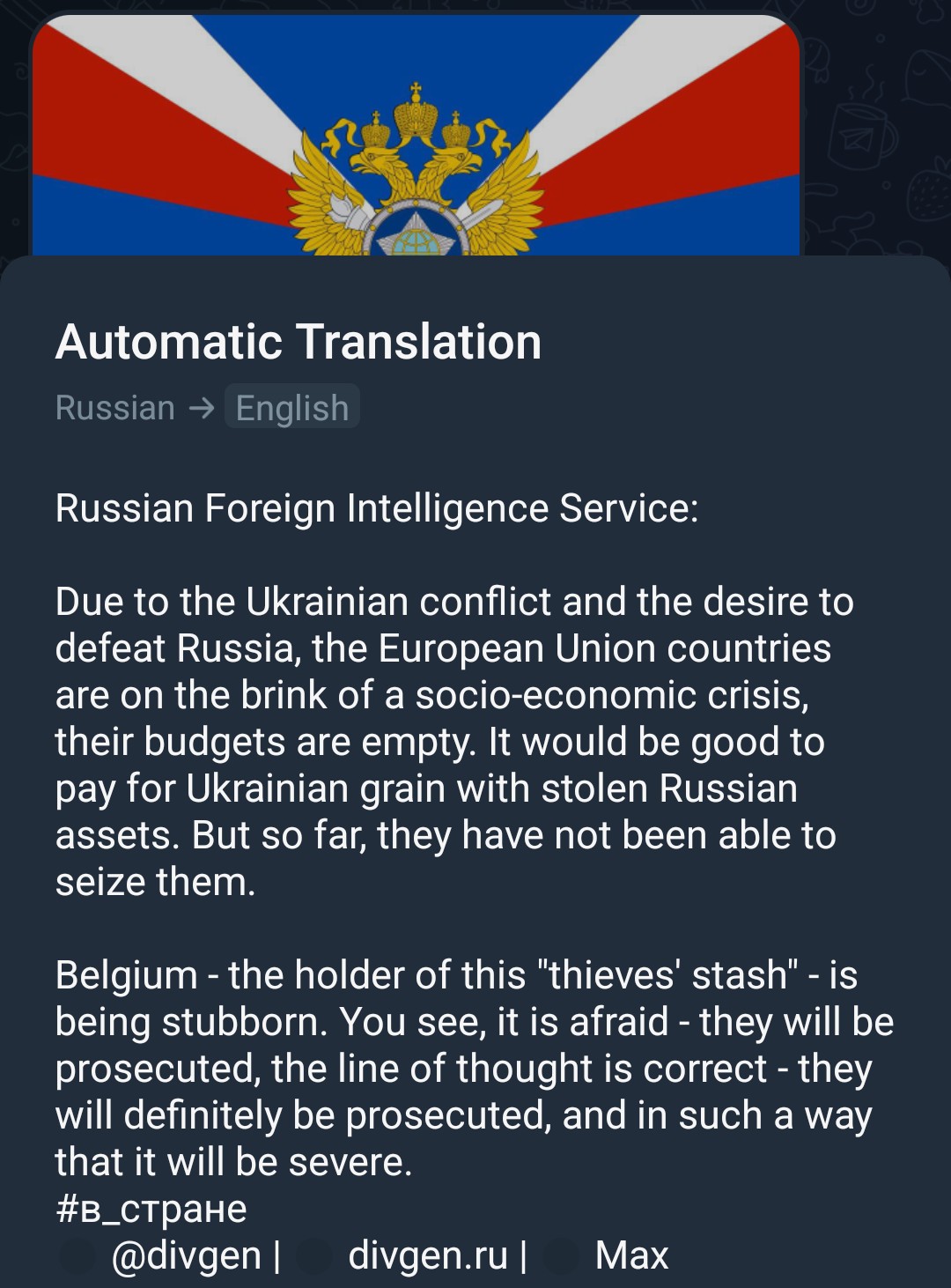 >>521217663I think Dimitri uses to the wrong tg channel.