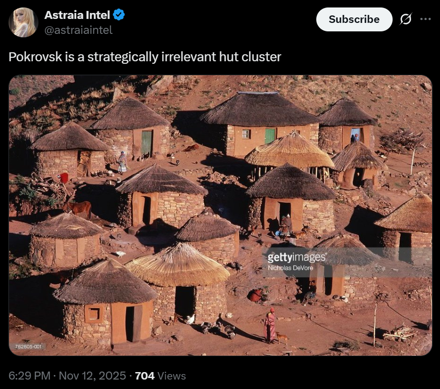 >Pokrovsk is a strategically irrelevant hut cluster