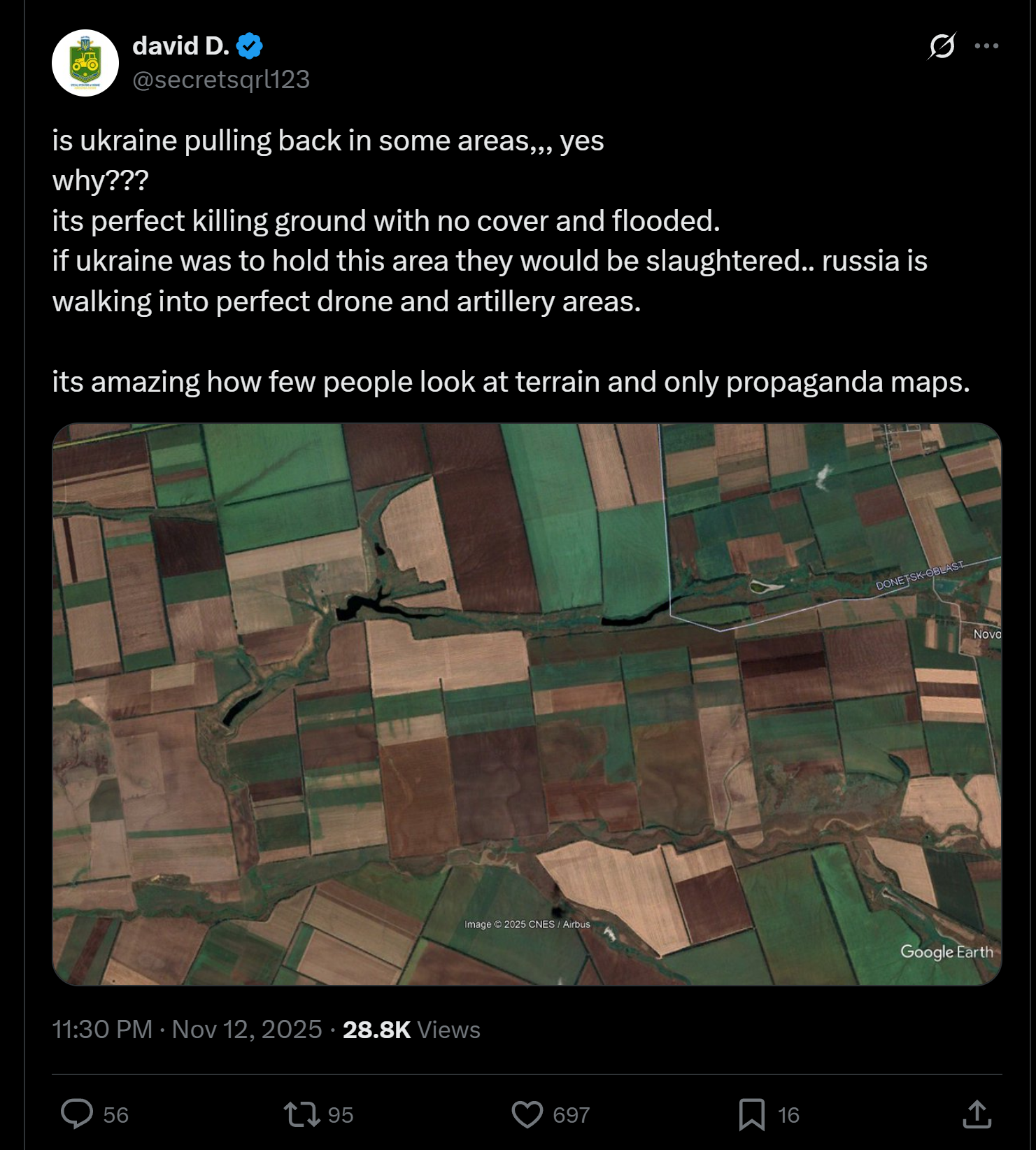 >>521231600>So it's open fields until Guilapole road? That's gonna be a rapid advanceIt's basically open fields until the Dnepr.