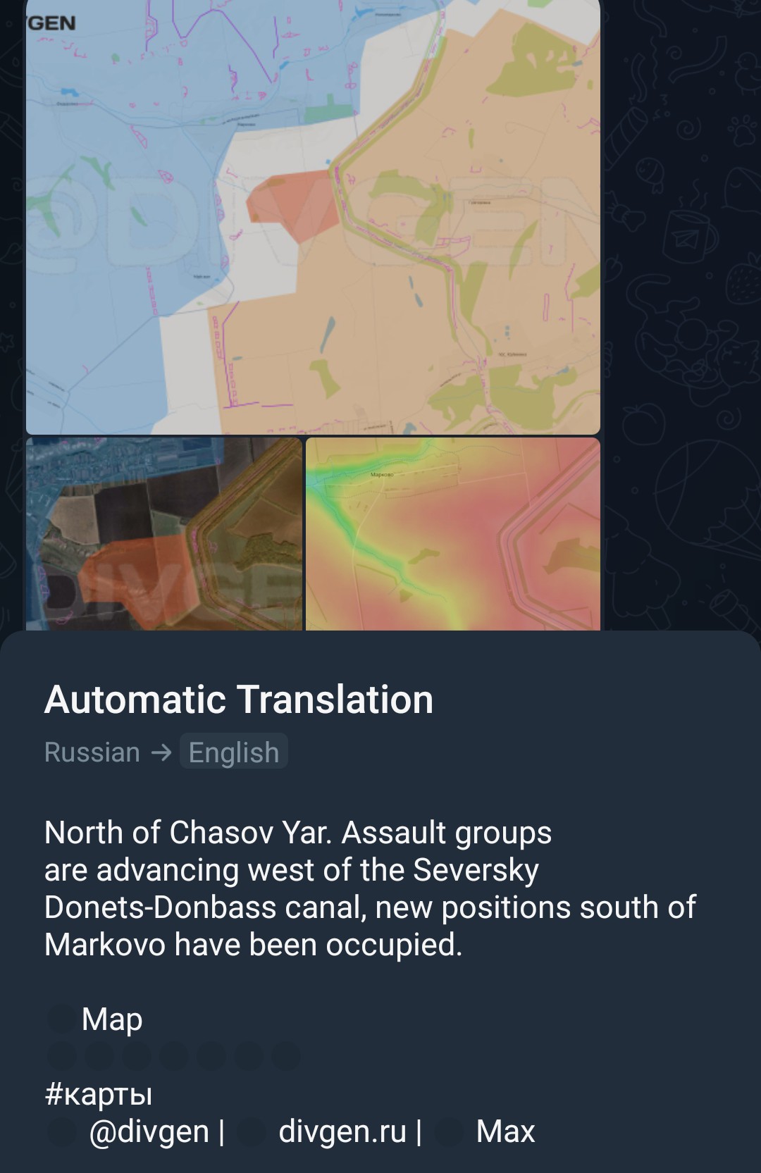 ▶MAPSRybarhttps://t.me/rybarSuriyakhttps://t.me/s/suriyak_mapshttps://www.google.com/maps/d/u/0/viewer?mid=1V8NzjQkzMOhpuLhkktbiKgodOQ27X6IVKalibrated maphttps://www.google.com/maps/d/edit?mid=1VcGZiwrEi8t9kXvVnWNEmO5ScvBWK6AWeeb Unionhttps://www.google.com/maps/d/u/0/viewer?mid=1sFRJhfNV-R1kSTXcej2MeHBzcCL8X0oDivgenhttps://divgen.ru/Air Raid Alarmshttps://alertmap.ruhttps://alerts.in.ua/enLive - Black Sea - Marine Traffichttps://www.marinetraffic.com/en/ais/home/centerx:35.9/centery:45.3/zoom:7Black Bird Group (Finnish)https://scribblemaps.com/maps/view/id/091194Livemap (Hohol)https://liveuamap.com/Copestatehttps://deepstatemap.live/ISW (neocons)https://arcg.is/09O0OSTopographical map of the Ukrainehttps://en-gb.topographic-map.com/map-wmv51/Ukraine/Copernicus satellite imageryhttps://browser.dataspace.copernicus.eu/NASA FIRMS "Firemap"https://firms.modaps.eosdis.nasa.gov/map/#d:24hrs;@36.6,47.3,6.4zMore maps:https://opermap.mash.ru/https://lostarmour.info/maphttps://t.me/s/NabrezhnyeIntel