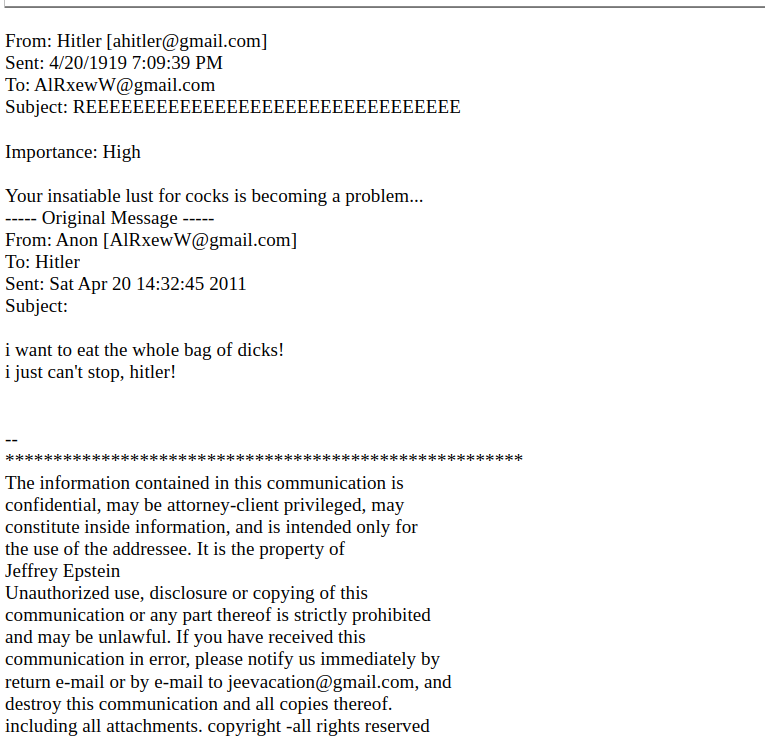 >You have no idea what the fuck you're talking about, they didn't 'go out of their way' to remove its ability to verified, they just hit 'export to pdfs' on the emails and decided to upload that instead of raw email data because the vast majority of the American public isn't composed of retards sperging about DKIM signatures. Go ahead, export an email to pdf, see what headers you can get lmao.