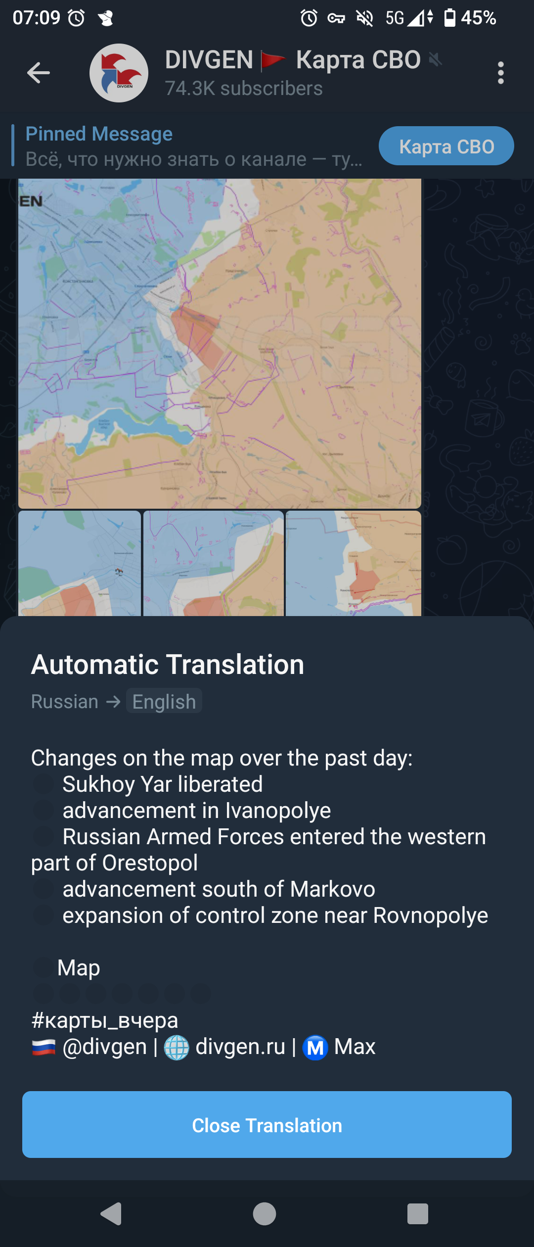 >Battlegroup East liberates over 25 kms of land, including Sladkoye, and Novoye in Zaporozhye direction - https://archive.today/tUwpJ