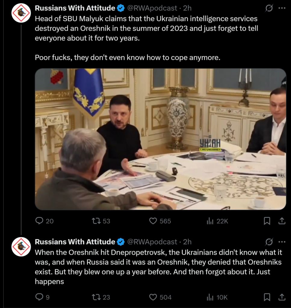 I'd applaud if Russia was in any way capable of intercepting any Ukrainian head of state (or close) in a lethal manner that tries to make it to Israel via plane -or- if they'd get there and then it's some days to weeks of Iran raining missiles onto them. I'm just tired of jews infesting nations, fucking things up and then making it to safety. They need to face the consequences of their actions.