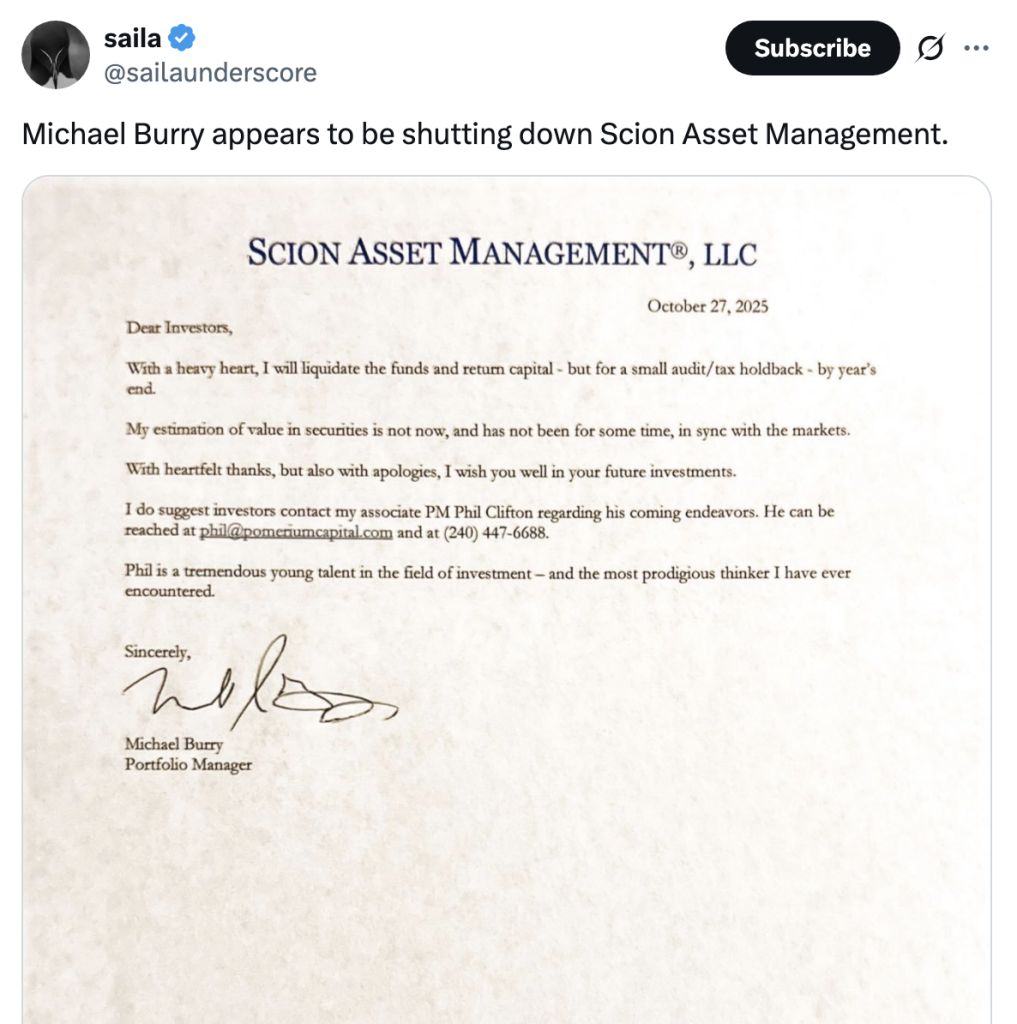 >In 2008, following the investor revolt and his subsequent financial victory, Burry shut down Scion Capital.