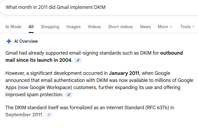 Anons, this OP has no idea how DKIP works, when it came (june 2011) to google, how to start using it (not automated) and when it was required (2024). We already talked about this with OP and he has not corrected his pasta. As it is usually hre, OP is lying peace of shit. Fuck you dude. Last time it was ok, because you did not know, BUT, after our talk last time you know, and you are STILL posting this shit.