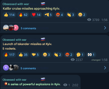 >Multiple explosions in Keev region - Iskanders >Power outages are being reported>4 more Iskanders launched