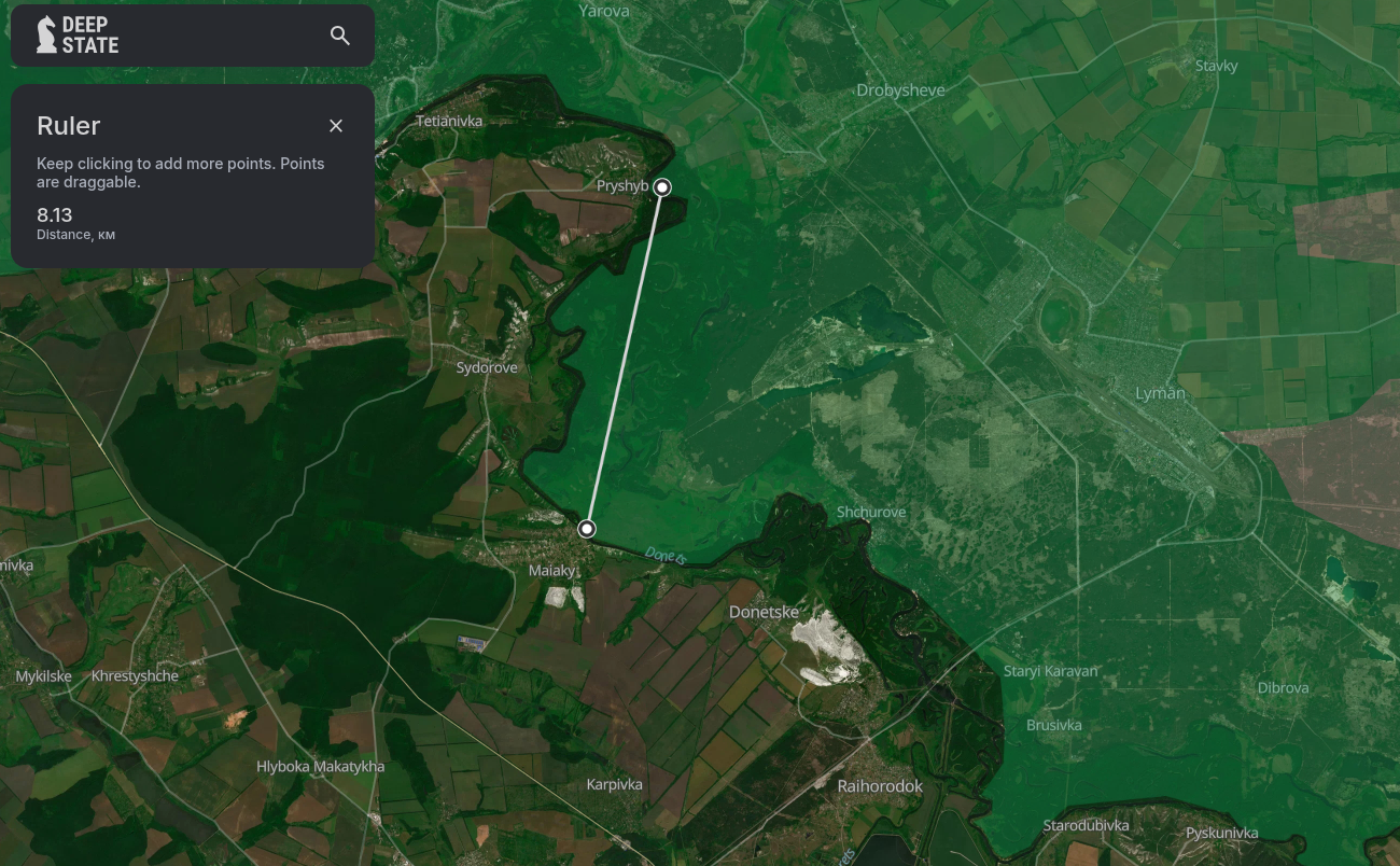 >>521360325They want to use the Siversky Donets river as a physical barrier to protect Sloviansk's northern approaches. At some point the Russians will have to cross. But it'll be on a wider front after they take Lyman they'll clear up all along the eastern side of the river.