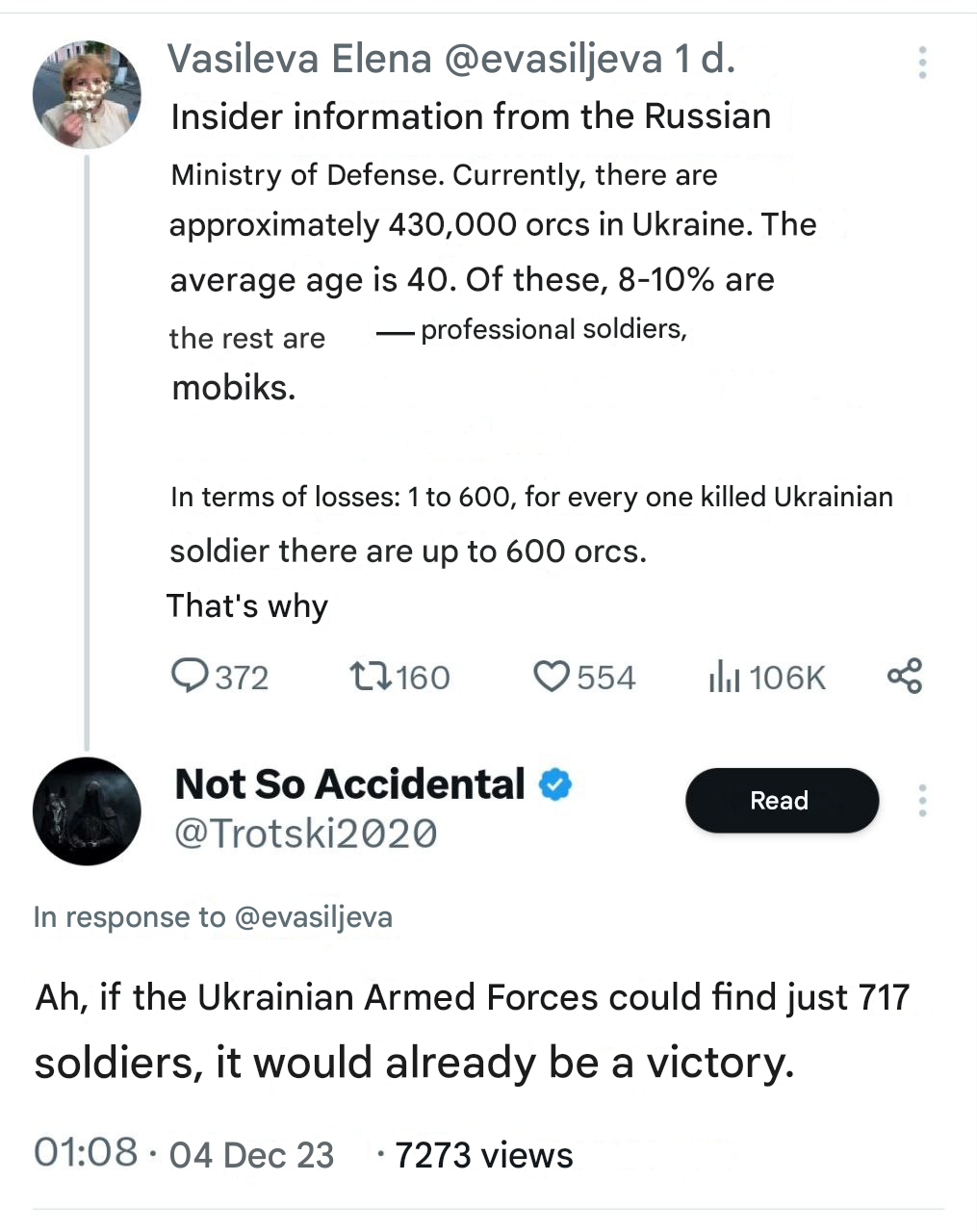 >>521380616no, they're getting killed by infections because there's practically no evac meaning they are literal cannon fodder for Russian artillery.