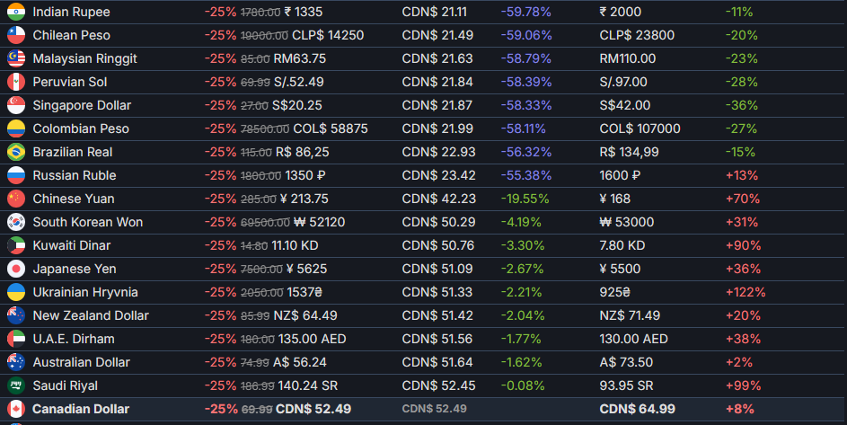 >>521385171Yeah sometime around last year or this year, even before the steam announcement, it got really cheap in South East Asia and South America both. Basically post Soviet-tier prices (which hohols are now excluded from, it seems kek).