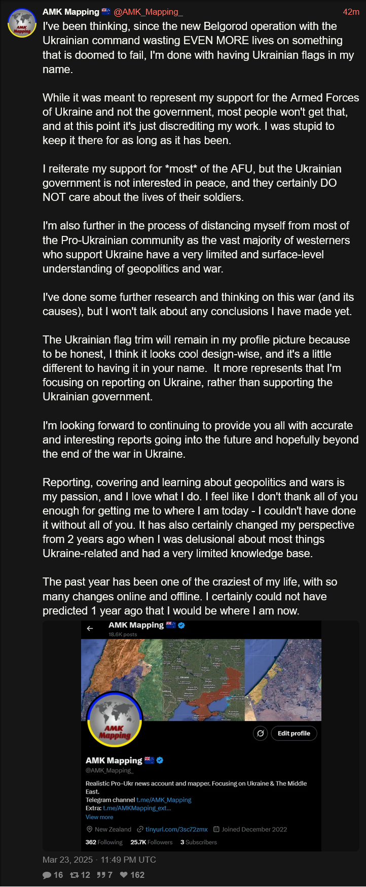 ▶MAPSRybarhttps://t.me/rybarSuriyakhttps://t.me/s/suriyak_mapshttps://www.google.com/maps/d/u/0/viewer?mid=1V8NzjQkzMOhpuLhkktbiKgodOQ27X6IVKalibrated maphttps://www.google.com/maps/d/edit?mid=1VcGZiwrEi8t9kXvVnWNEmO5ScvBWK6AWeeb Unionhttps://www.google.com/maps/d/u/0/viewer?mid=1sFRJhfNV-R1kSTXcej2MeHBzcCL8X0oDivgenhttps://divgen.ru/Air Raid Alarmshttps://alertmap.ruhttps://alerts.in.ua/enLive - Black Sea - Marine Traffichttps://www.marinetraffic.com/en/ais/home/centerx:35.9/centery:45.3/zoom:7Black Bird Group (Finnish)https://scribblemaps.com/maps/view/id/091194Livemap (Hohol)https://liveuamap.com/Copestatehttps://deepstatemap.live/ISW (neocons)https://arcg.is/09O0OSTopographical map of the Ukrainehttps://en-gb.topographic-map.com/map-wmv51/Ukraine/Copernicus satellite imageryhttps://browser.dataspace.copernicus.eu/NASA FIRMS "Firemap"https://firms.modaps.eosdis.nasa.gov/map/#d:24hrs;@36.6,47.3,6.4zMore maps:https://opermap.mash.ru/https://lostarmour.info/maphttps://t.me/s/NabrezhnyeIntel