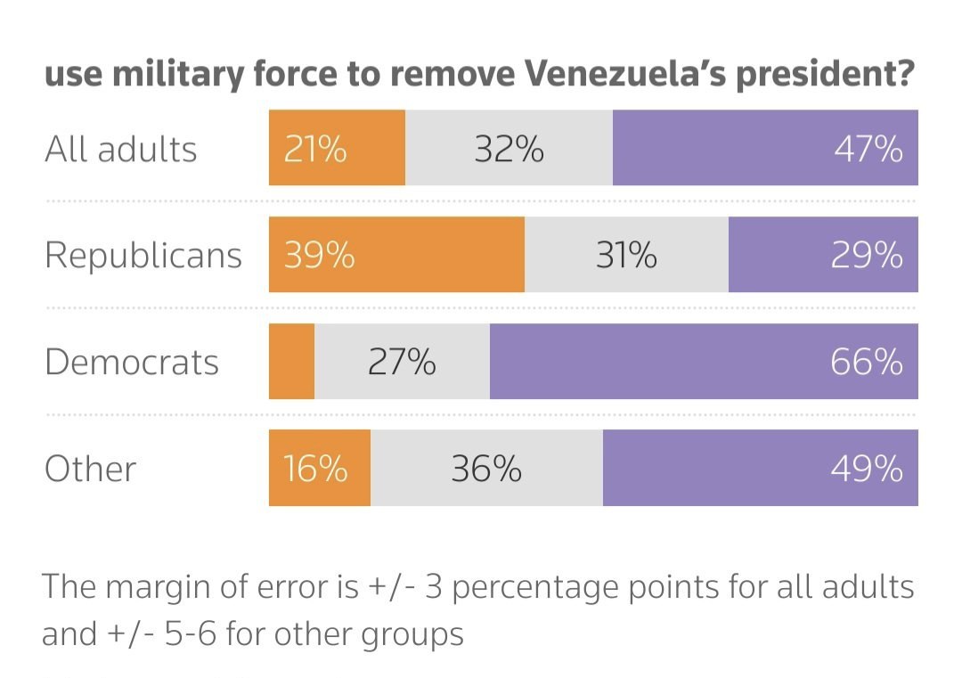 >US regime-change war against Venezuela very unpopular — Reuters/Ipsos poll>21% of Americans support Trump’s plan to overthrow Maduro by military means who the fuck are these people, americans don't even know where venezuela is why would they support us bombing them>32% support overthrow without military intervention >47% against entirely