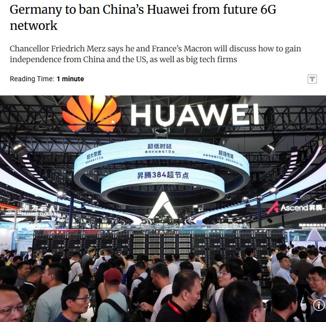 Huawei will not be allowed to be a part of Germany and Europe's 6G network.