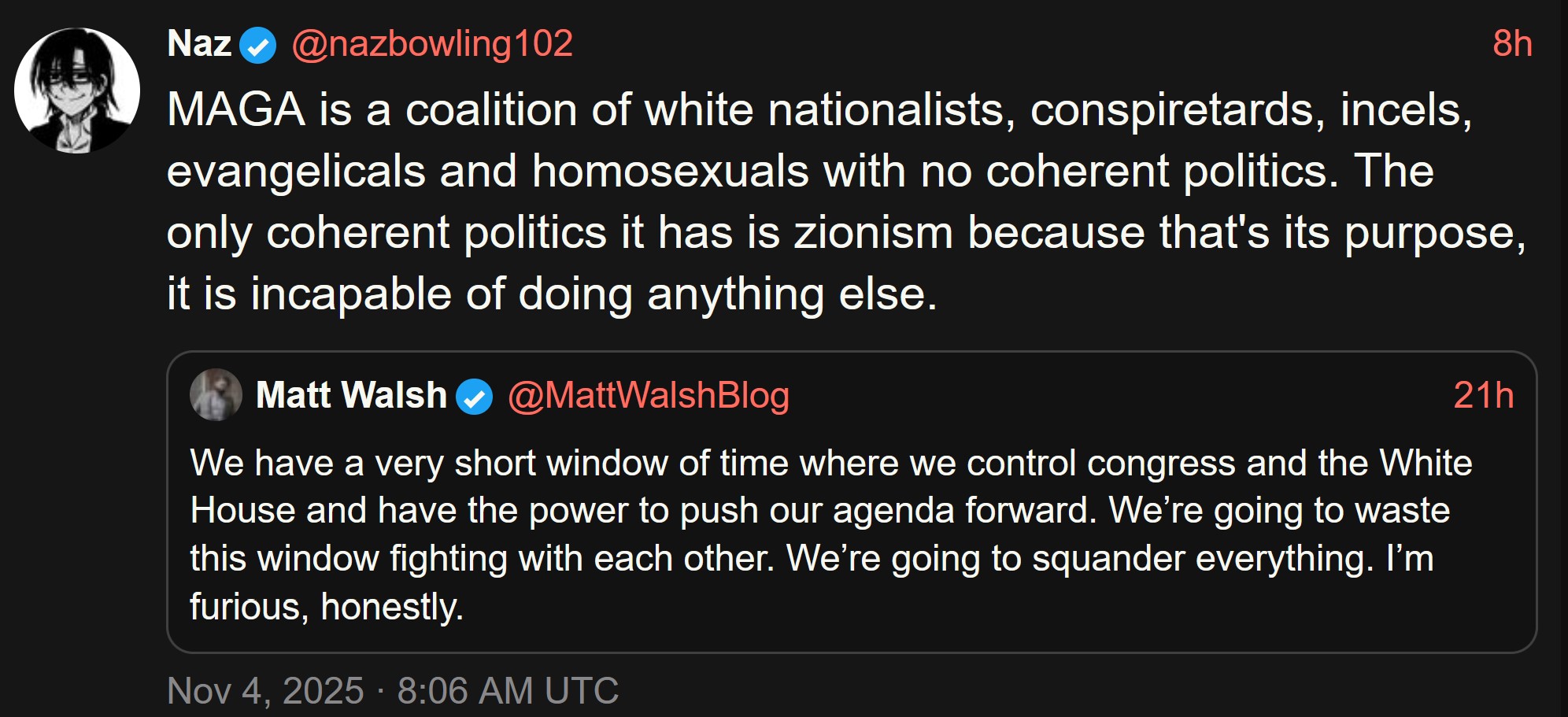 >>521404348>what the hell is wrong with people like Matt Walsh?he's a jogger loverwhich ranks him at least as low as a jew