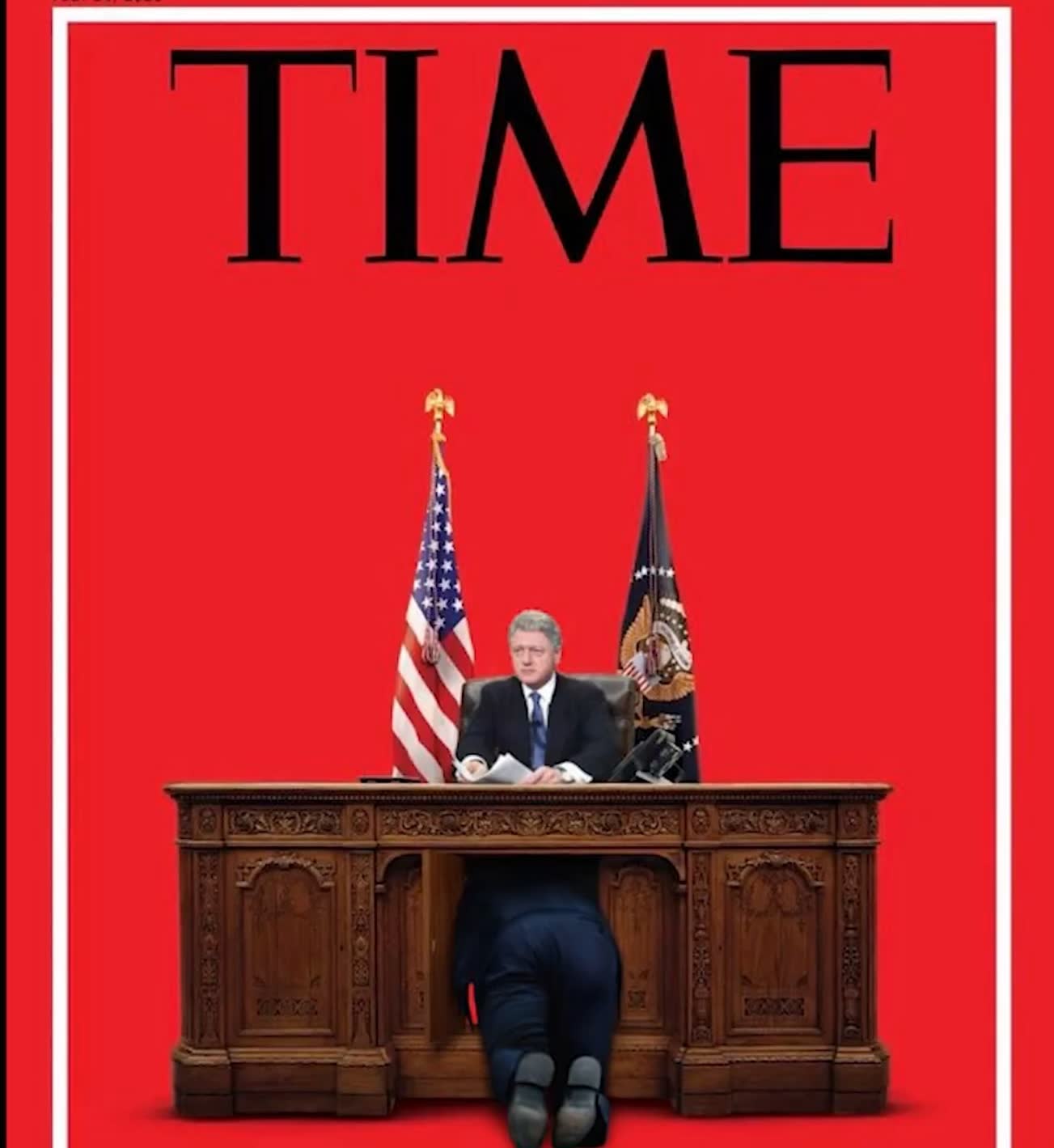 If its real, it's simply a humorous mockery of the Lewinsky scandal. Just bros being bros. I'm sure it didn't go past this picture, and Bills cock never exited his slacks. Seethe libfags