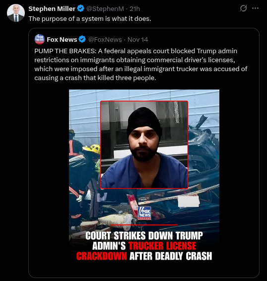 >>521536617Thanks baker That judge should be jailed for murder if another illegal CDL kills someone . Its insane that a judge would rule that way in favor of illegal aliens. Traitor